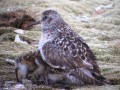 ![]() | Young birds are all over the village. A purple sandpiper is walking with four chicks close to the station. The chicks forage independently and at regular intervals the mother warms them. It takes some time before all four chicks have found a position under mothers wings. |