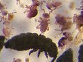 | Vandaag determineert Elise de insecten die ze verzameld heeft. Onder de vergroting van de binoculair worden het prachtige kleine monsters. Paarse springstaarten, rode mosmijten en veel meer. | ||